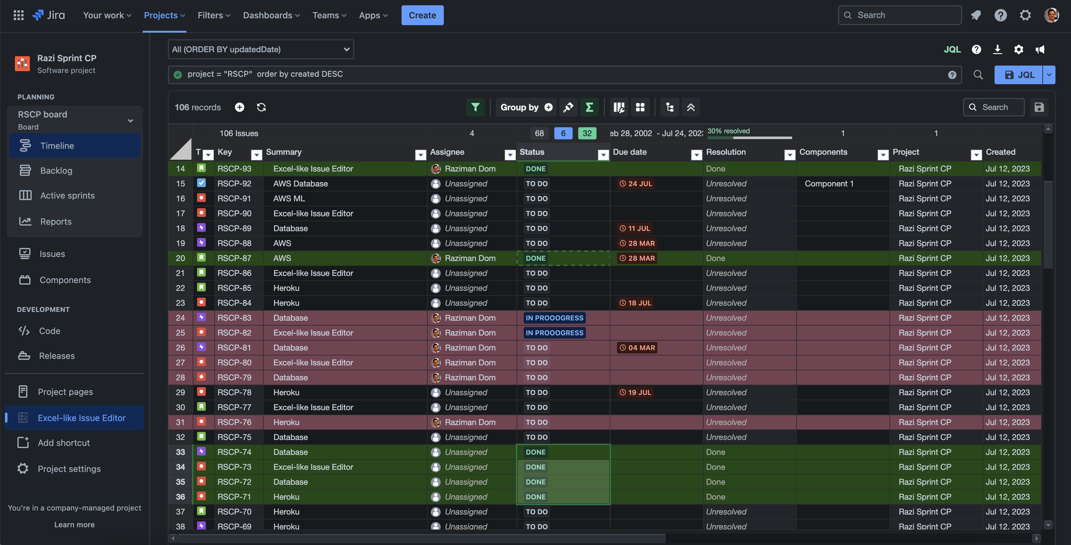 Excel-like Issue Editor supports the Atlassian dark theme. The app will automatically match your Atlassian configuration.