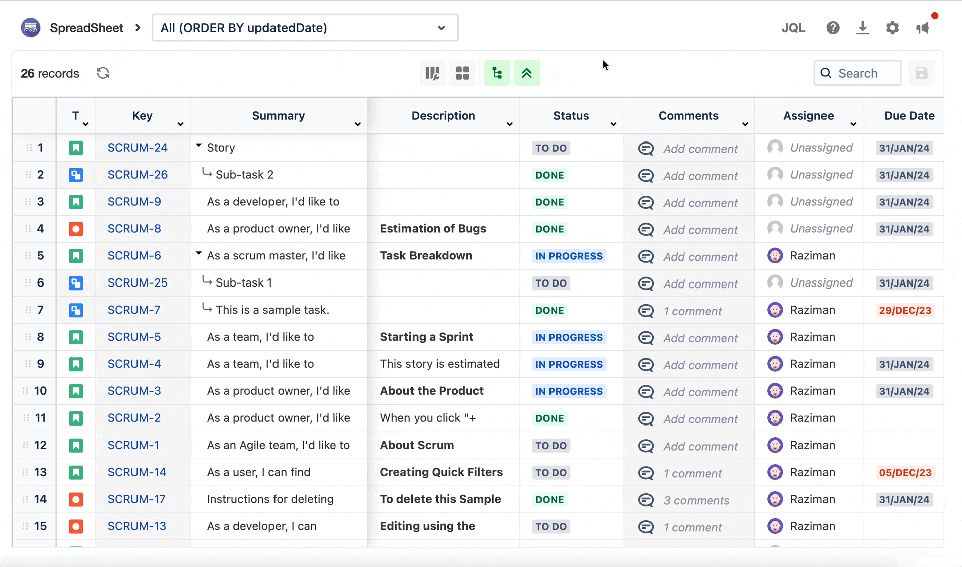 For better view, it is recommended to view the issues in hierarchy when creating sub-tasks.