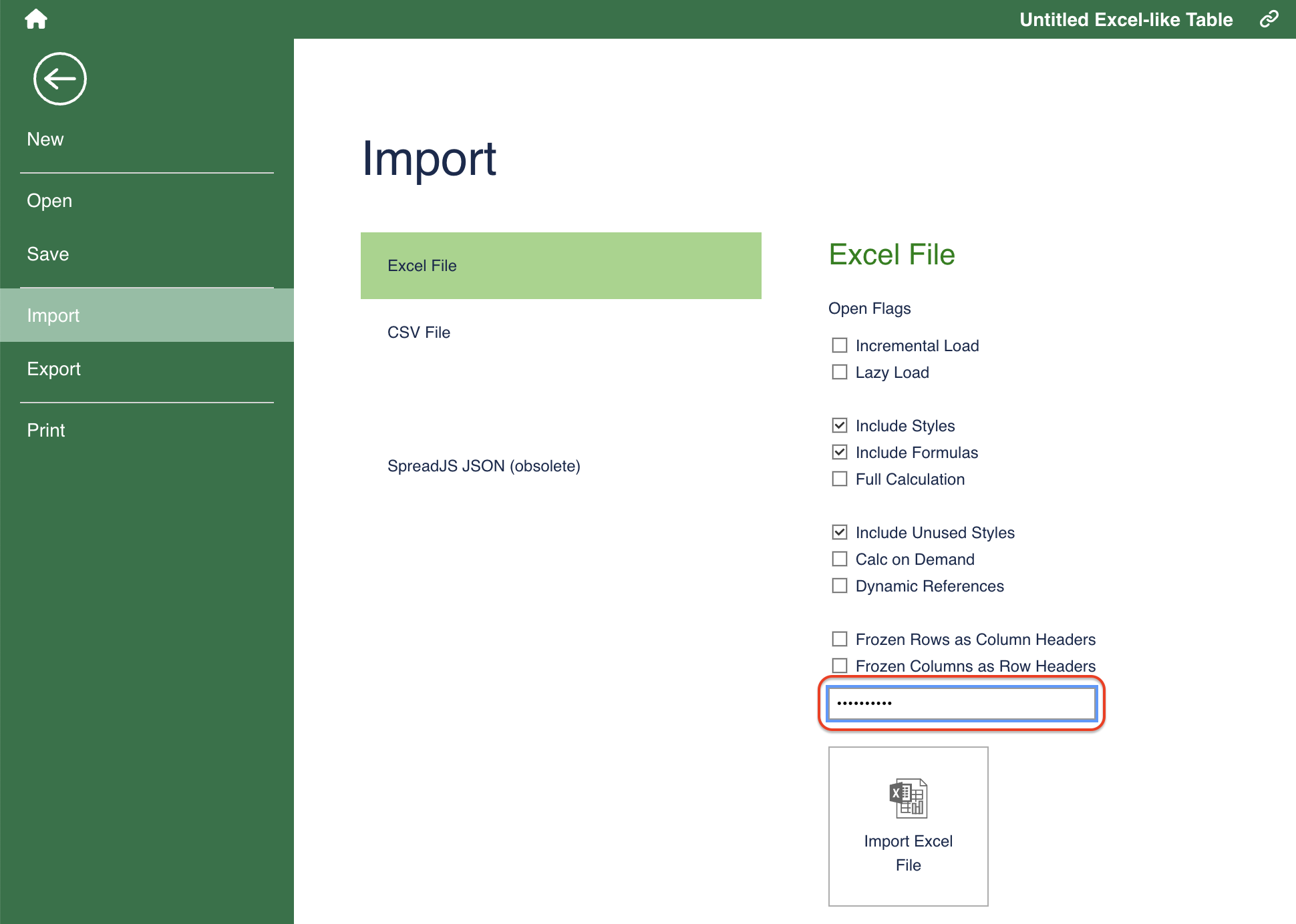 Users can import and export password-protected Excel files. Click the home icon at the top-left menu, then the below page will be shown on your screen.