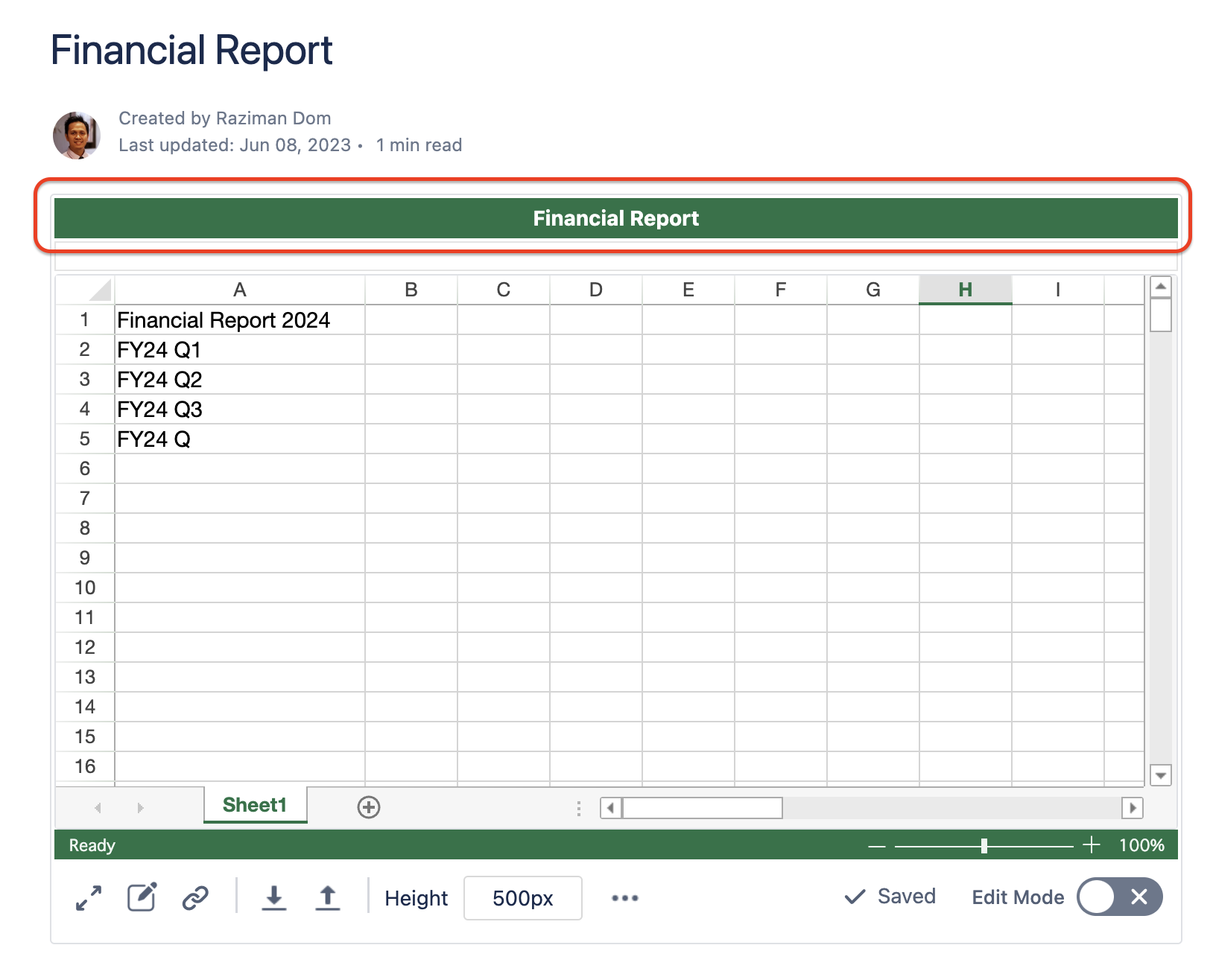 By default, the table name will be “Untitled Excel-like Tables.”