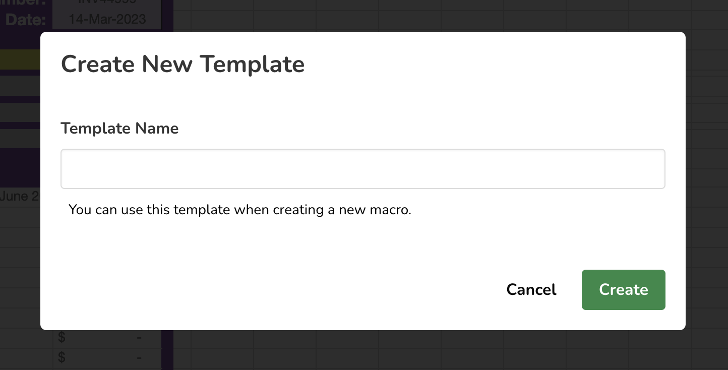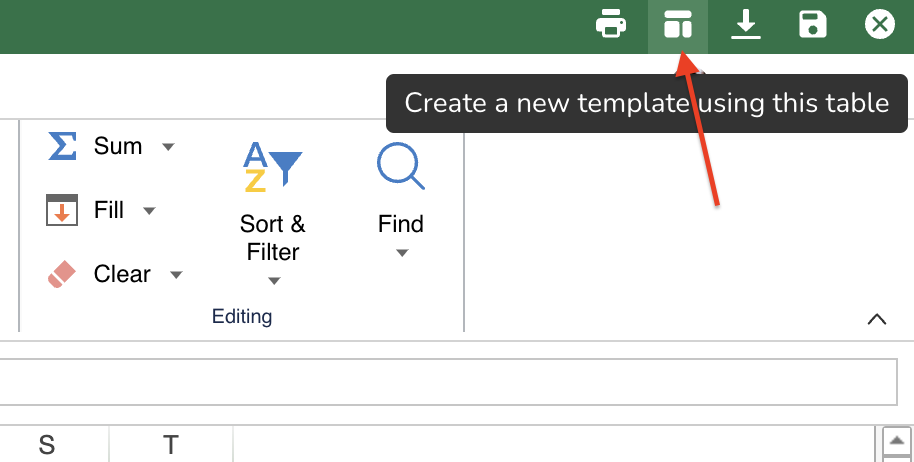 On the Excel-like Tables for Confluence full editor screen, click the Template icon in the header bar.