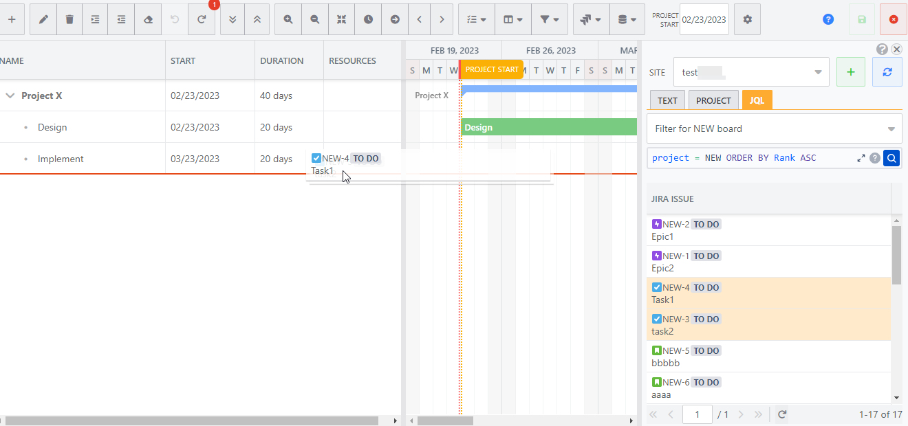 Insert existing Jira issues into Gantt chart