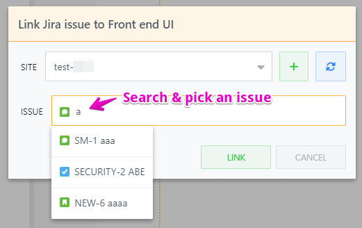 2. Search and pick an issue you want to link to.