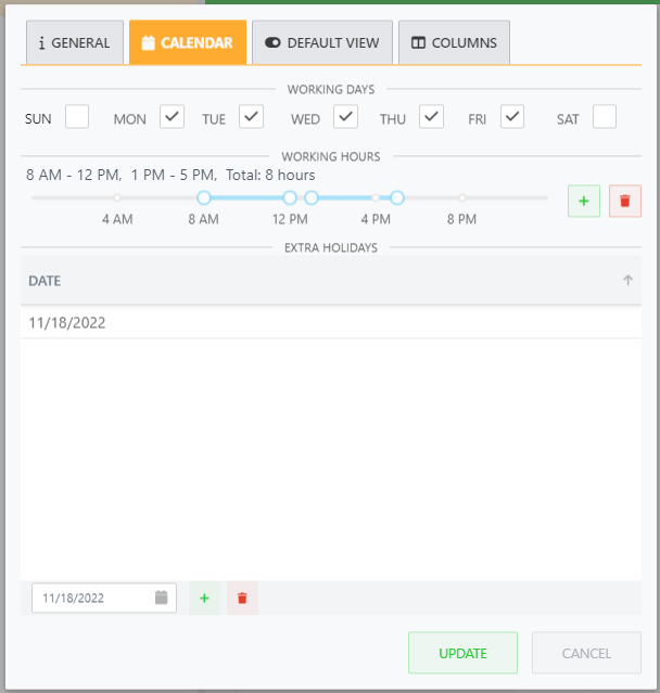 Edit working days, working hours, and extra holidays