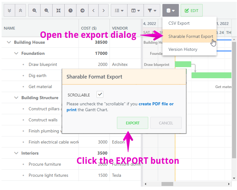 How to export the Gantt Chart
