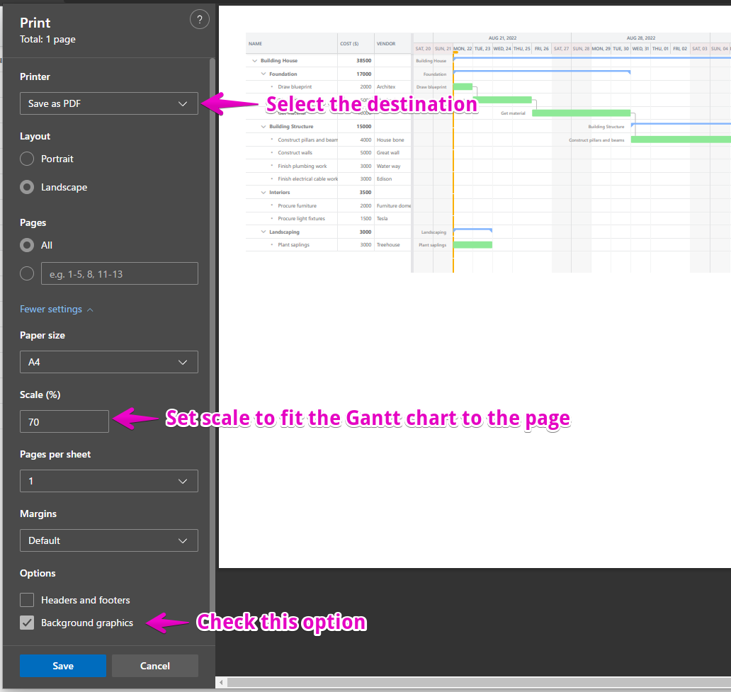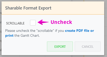 But, it will prevent you from printing the entire exported file. So please uncheck it when you’re going to print the Gantt chart.