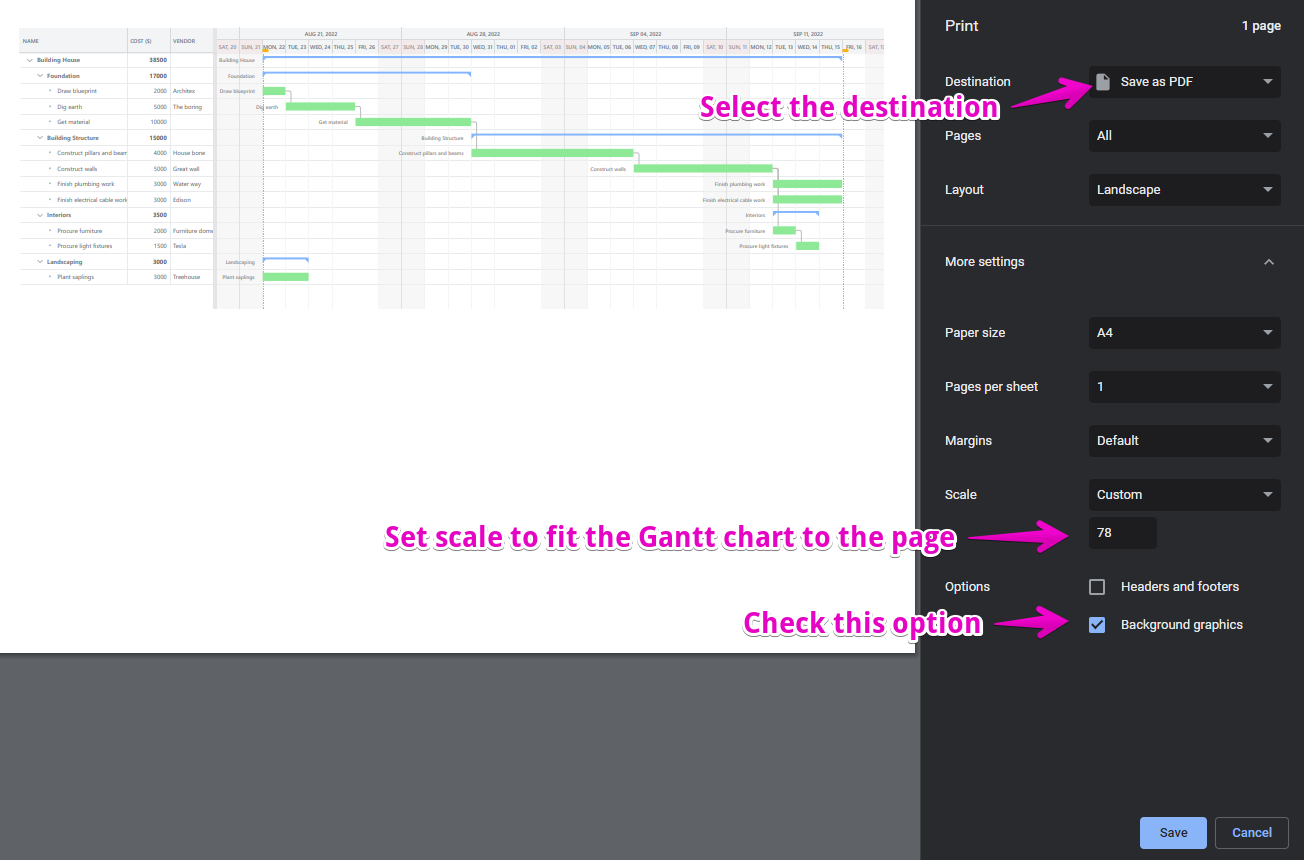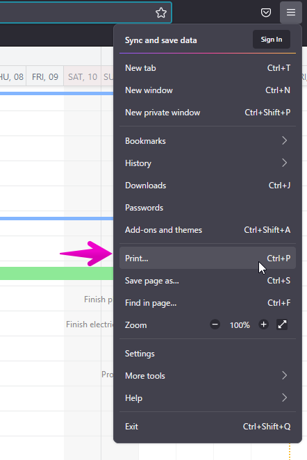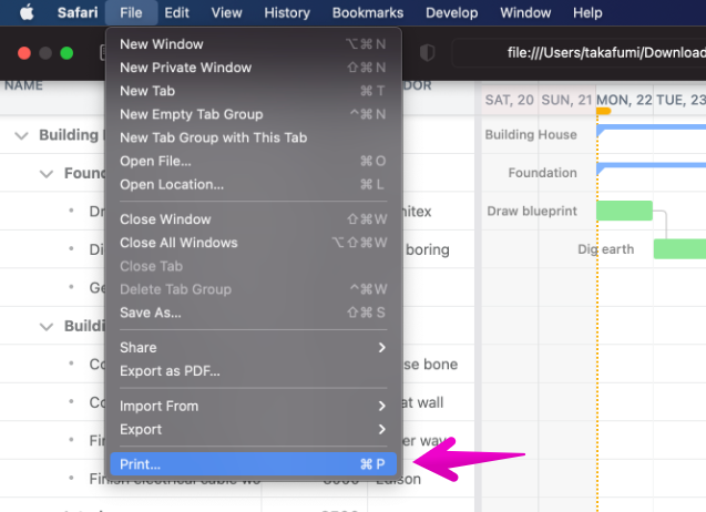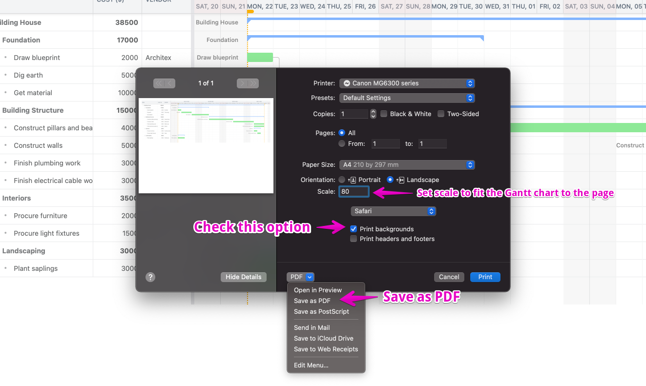 You can also print the Gantt Chart or convert the file to a PDF or an image.