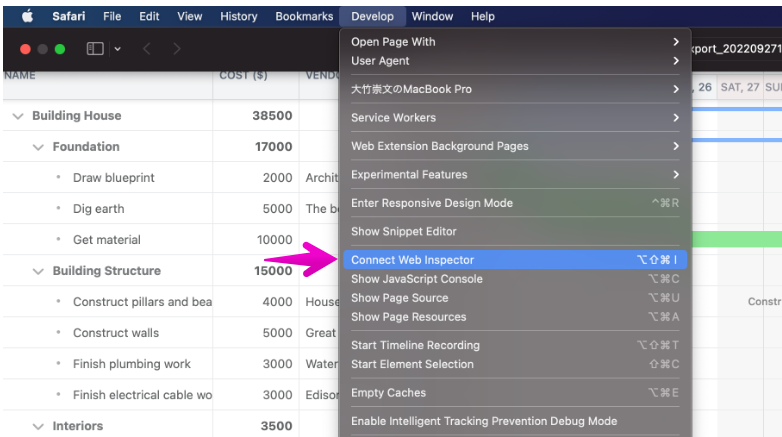 Open the Connect Web inspector. If there’s no Develop menu, please refer to this page.