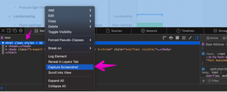 Open the context menu on the HTML tag. Then, click the Capture Screenshot menu.
