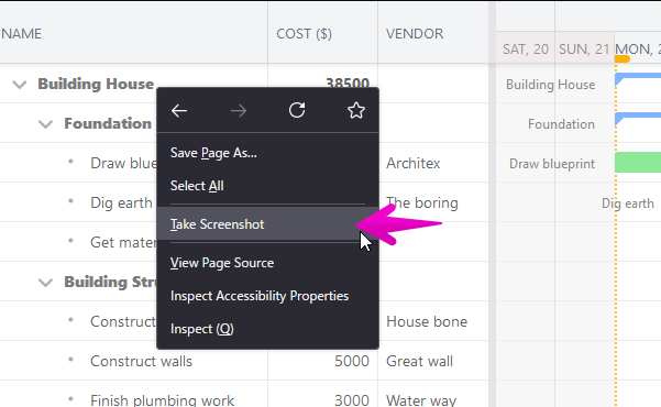 Open the context menu. Then, click the Take Screenshot menu.