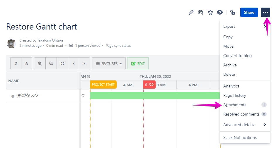 All Gantt chart data is stored in an attachment of the page that the Gantt chart is on.