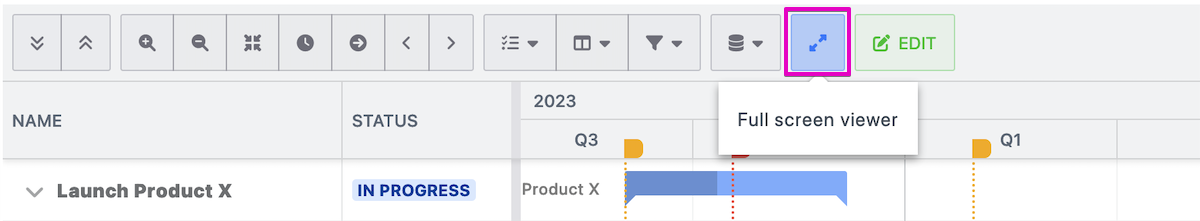 | 1 | Full screen view | You can view the Gantt chart in fullscreen without having to open the editor: ![]() |