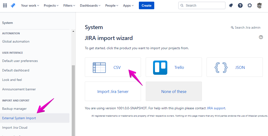 Go to [System → External System Import → CSV].