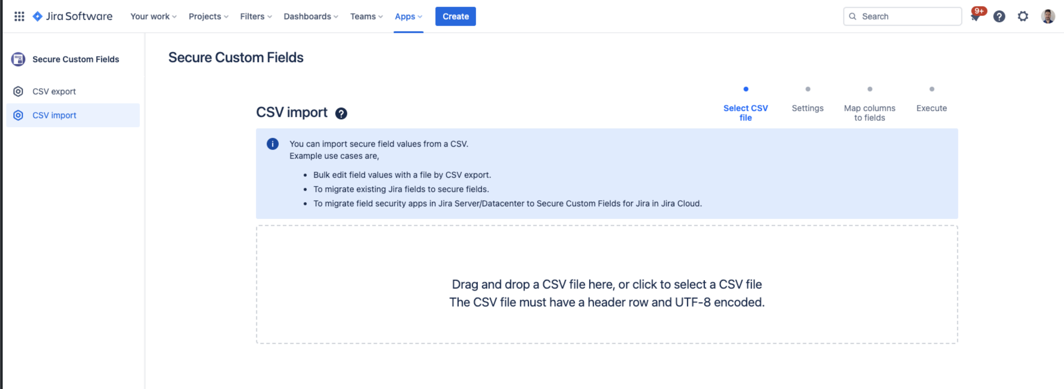 Then go back to Secure Custom Fields app on step 3 → CSV import → upload the CSV generated on step 1