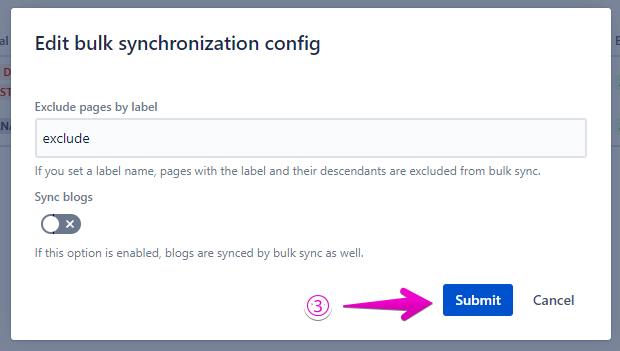 Space administrators can set a label to filter pages to be synced and whether or not blogs will be synced.