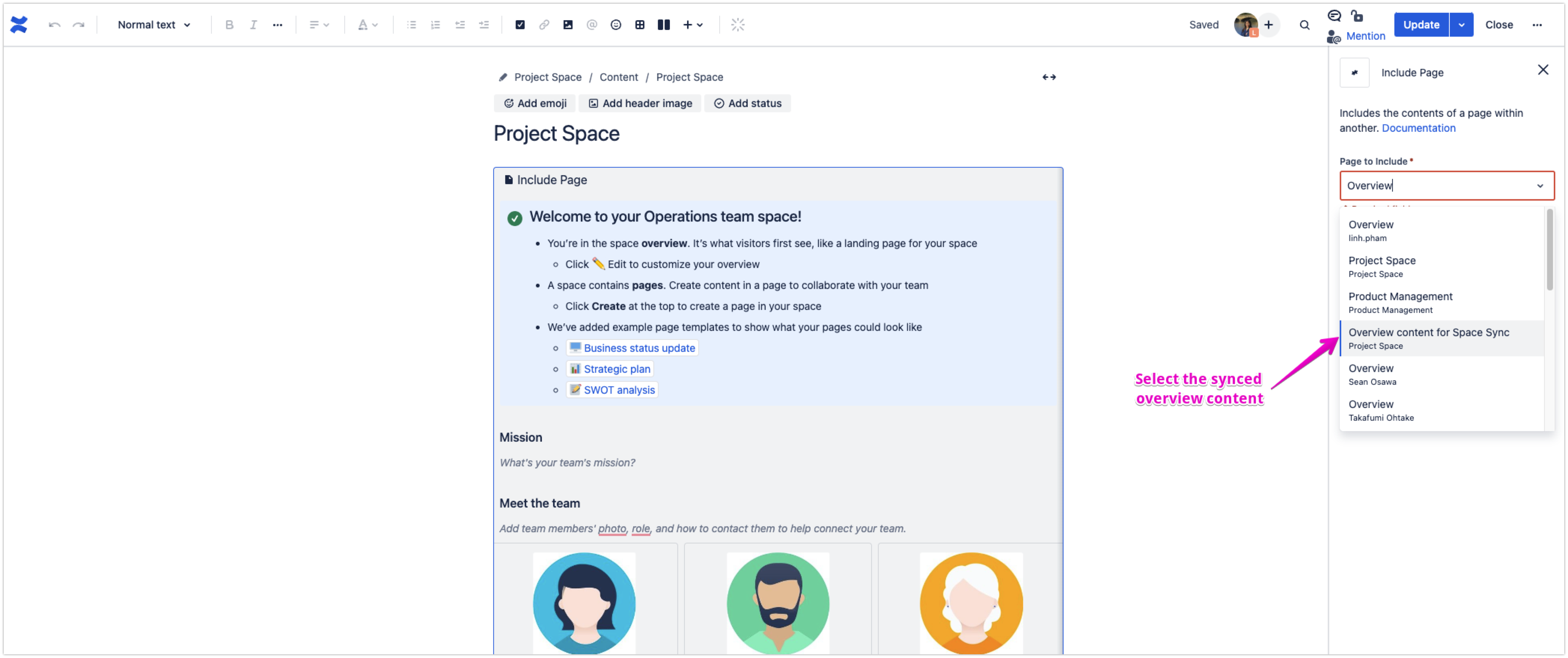 Now, you can pull content from the synced overview page: