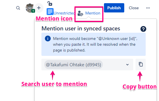 When pasting mention, “Unknown user” is shown. ![]() | This is a limitation of Confluence. |
