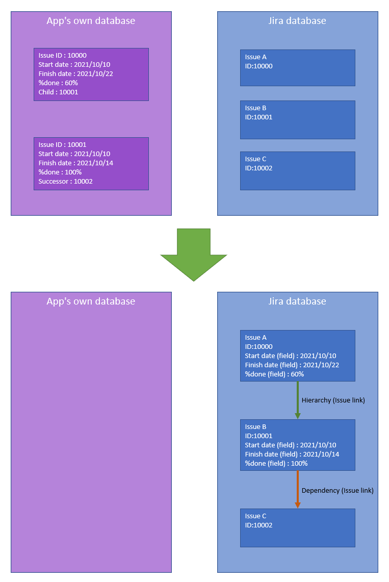 This page explains how to convert the app's own data in WBS Gantt-Chart to Jira issue link/field.