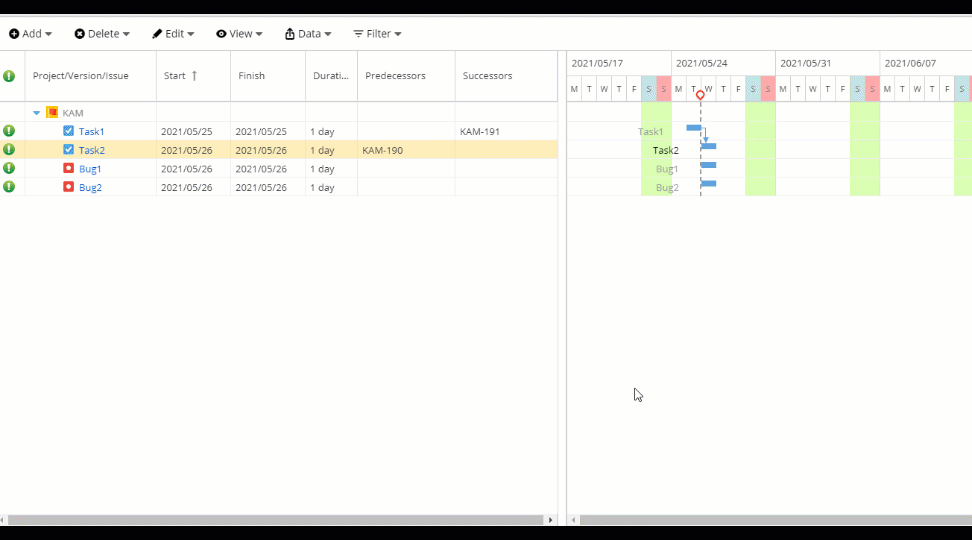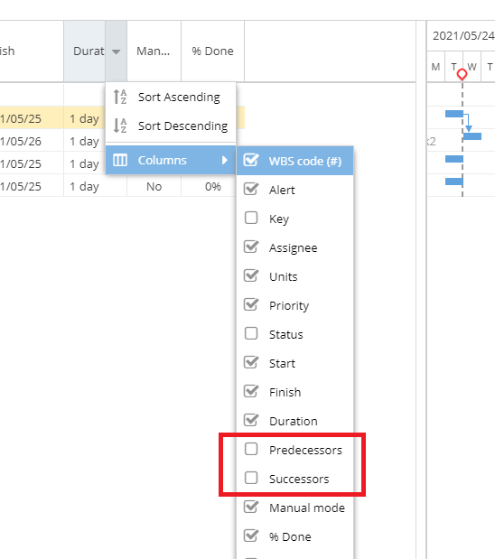 You can also use the Successor and Predecessor columns to view and edit dependencies.