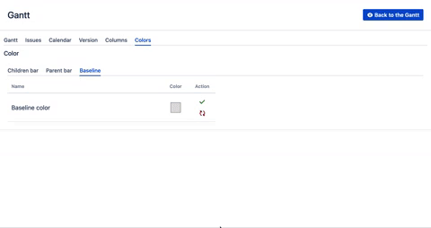From the Gantt list, click on the “Configure“ link of the Gantt you want to change color settings, then choose the “Colors” tab in the next screen.