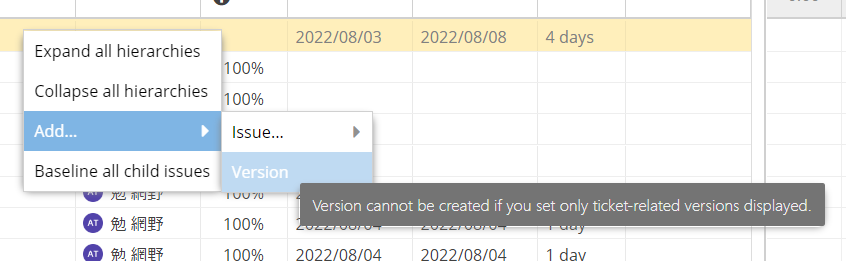 Add explanation for the "Versions related to issues only" option in the setting, and show the reason why cannot created version on the Gantt