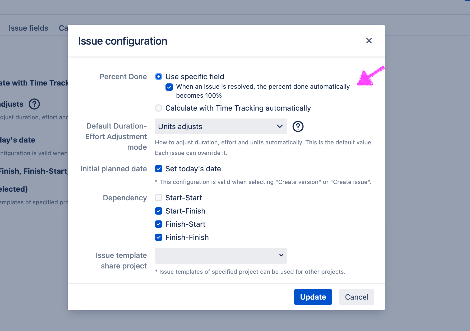Let user configure to update 100% done automatically for resolved ticket. (Productboard)