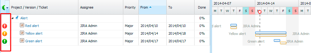 Warning alerts are useful for telling you if an issue has started or completed as planned. If there is a colored “!” on the left-hand side of the WBS, that means there is information about the status of the issue.