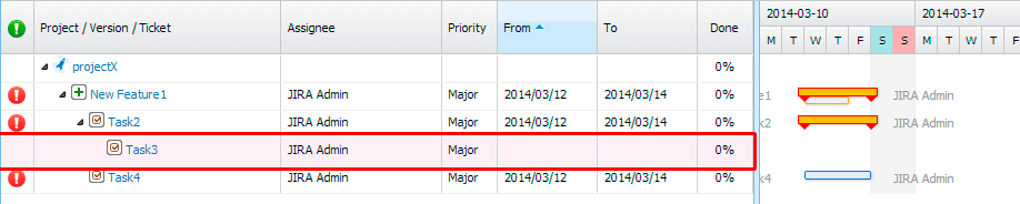 You will see that that the selected issue is highlighted in the WBS Gantt-Chart screen, as shown below.