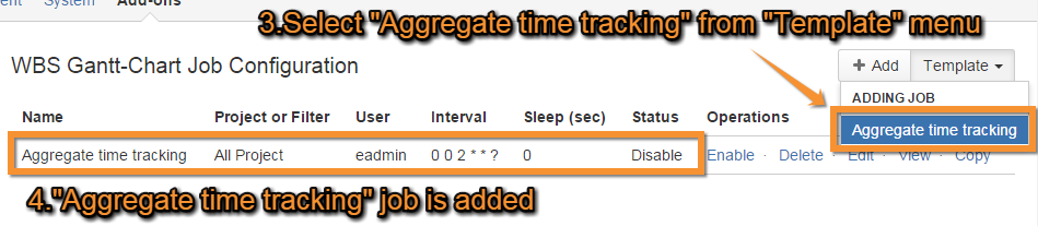 Click the Edit link (under Operations) for your Aggregate time tracking job.