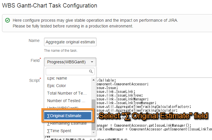 Input the required items, and click Update. In this case, select the field ∑ Original Estimate.