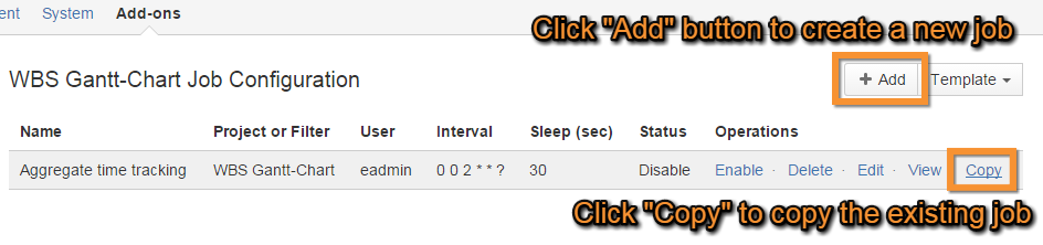 You can also copy an existing job by clicking Copy (under Operations).