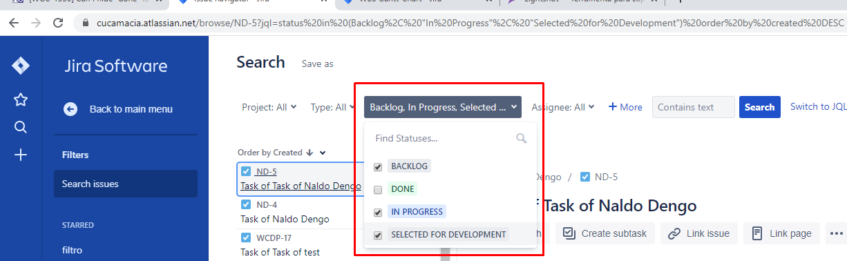 2. Under Filter, select Search issues