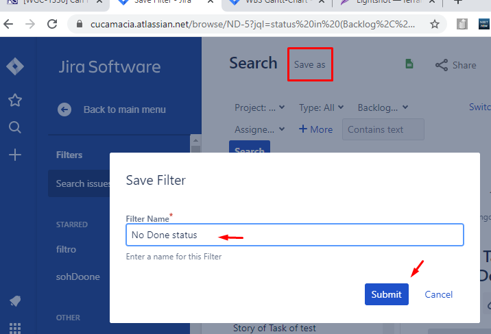 However, it's important to point out that if there are any dependencies related to the Done issues, with this filter, the dependent issues won't be displayed as well. To implement this solution, first, it's necessary to create a new filter and then create a new Gantt using this new filter.