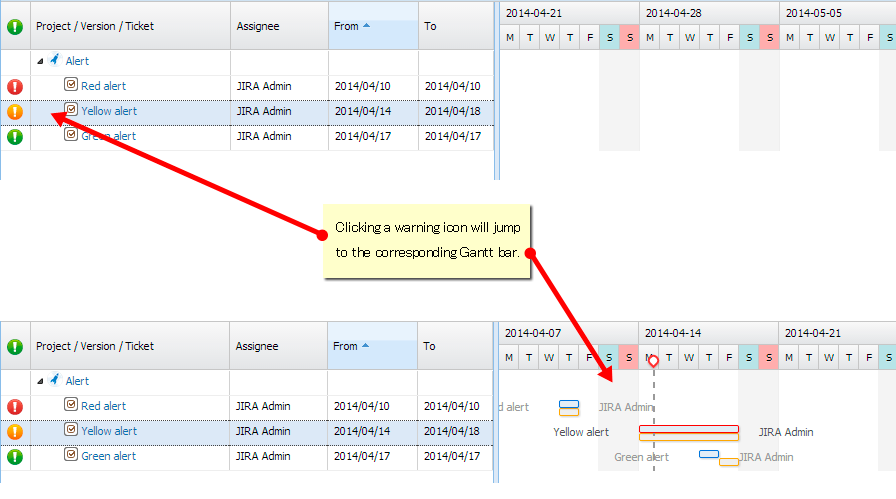 The due date set for an issue is indicated by a red line on the Gantt chart.