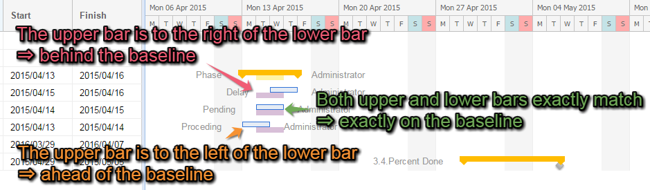 The difference between these two Gantt bars represents the difference between the current plan and the baseline.