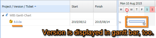 A version is displayed as a Gantt bar based on its start date and release date. The release date is displayed as a milestone (rhombus shape).