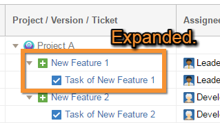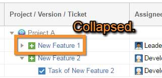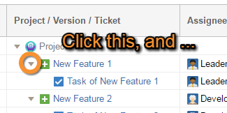 Click the triangle symbol mark under Project/Version/Issue to expand or collapse an issue. If no black triangle is shown, this means the issue has no child issue.
