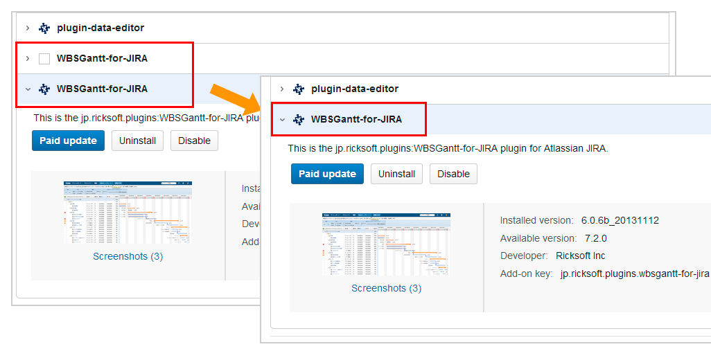Refresh the administration add-on screen to ensure that only the latest version of WBS Gantt-Chart for Jira is displayed.