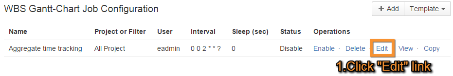 Click the Edit link (under Operations) for your Aggregate time tracking job.