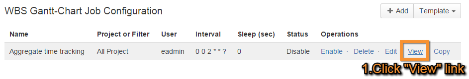 Click View (under Operations) for your Aggregate time tracking job.
