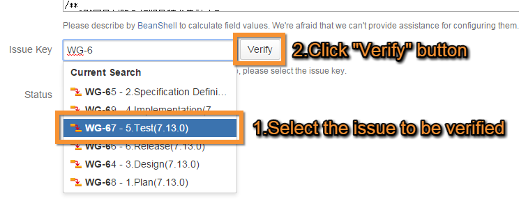 Input the issue key of the issue to be verified in Issue Key in the task configuration screen.