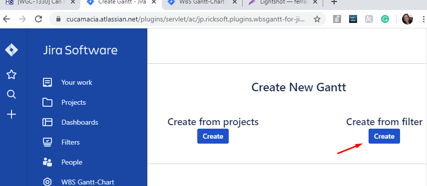 5. In your Jira Software menu located in the left of the page, select the WBS Gantt-Chart option